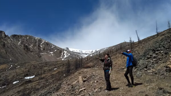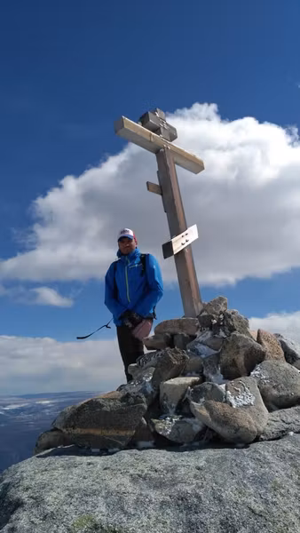 Путь на вершину очевиден и идёт по дороге, с которой очень трудно сбиться, только разве в условиях совсем плохой видимости. По мере набора высоты открываются отличные виды: на долину с посёлком и Иркутом, на противоположный борт долины с куполом Саянской солнечной обсерватории, а вскоре и на «заграницу». Если считать Монголию заграницей, а уже с самой вершины видно великую Мунку-Сардык! Можно бесконечно долго стоять и любоваться открывшимися с пика видами, но это практически невозможно из-за холодного ветра. По этой же причине на горе почти нет снега, она вроде как угловая и подвержена всем ветрам.