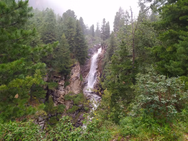 И дождь также посчитал, припустив уже по-серьезному. Но нам он уже не мешал, мы бодрым шагом спускались вниз, предварительно побродив по волшебному лабиринту ручейков. На водопаде остановились у нашей стоянки, выпили ссобойное по глотку и бегом дальше.