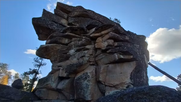 Выдающийся останец представляет из себя фигуру с головой высотой 20м, сложенную из каменных «кубиков».