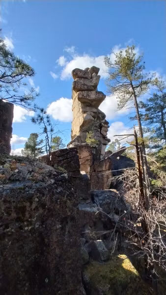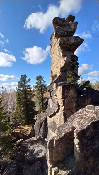 Один из самых удивительных скальных останцев — Химера, из группы Куйтунских столбов, находится в районе между Култукским трактом и Ангарском.
