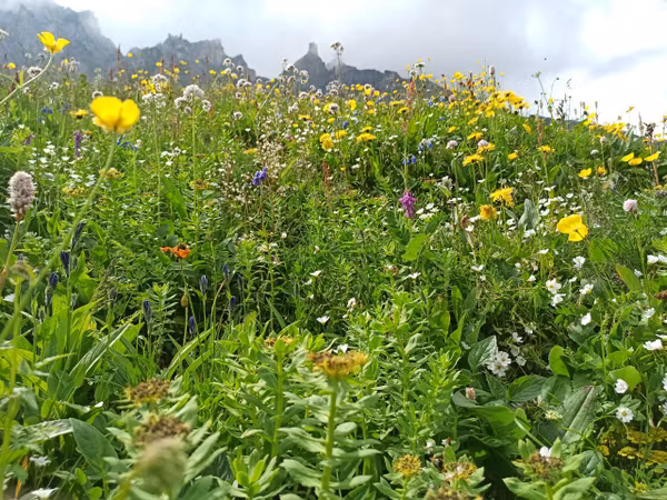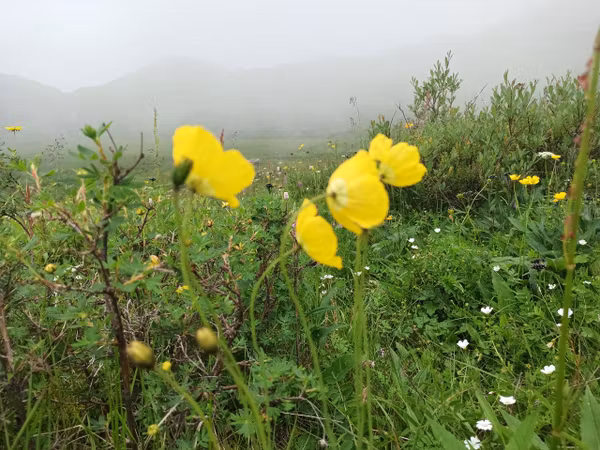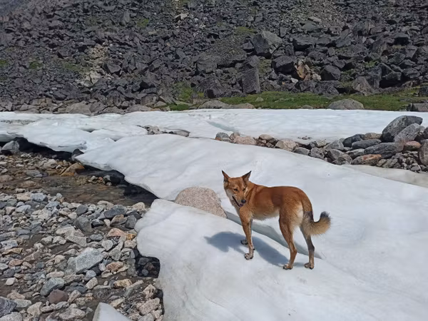 Очень мне то ущелье понравилось! Горы, вокруг высятся огромными многоэтажками, словно по городской улице идешь. Цветов ароматных — разноцветный ковер. Облака белыми зайцами скачут по скалам на небо. Ручейки текут холоднючие, очень хорошо лапки освежает. Гляжу, люди будто что-то подбирают с земли да кладут в пакет. Что-то вкусное нашли, надо к ним скорей бежать! А оказалось, это они травки собирали. Небось, болит что-нибудь, лечиться будут. Я тоже травой лечусь. Когда живот беспокоит, тошнит — я зелёный пырей ем, помогает.
