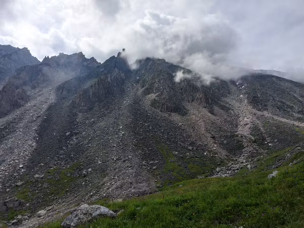 А дальше страхи пошли — скалы все разломанные, как стены в заброшенном доме, камни от каждого шага выстреливают вниз. Я посмотрела, куда они падают и ничего не увидела, снова вокруг был туман, будто пакет с мукой разорвался.